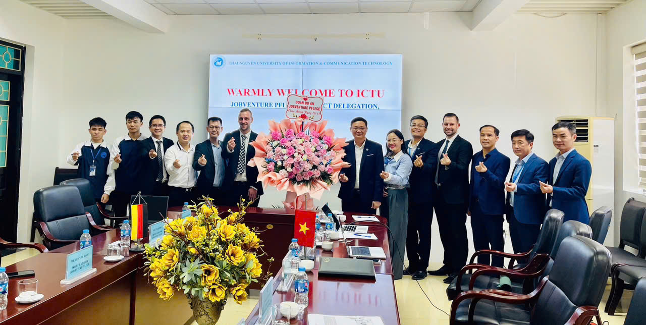 Khoa Kỹ thuật và Công nghệ – Trường Đại học Công nghệ Thông tin và Truyền thông (ICTU) vừa có buổi làm việc hết sức thành công với Đoàn dự án JobVenture Pflege đến từ CHLB Đức, mở ra cánh cửa rộng lớn cho các bạn sinh viên ngành Cơ điện tử, Công nghệ ô tô và Tự động hóa có mong muốn học hỏi, trải nghiệm và phát triển sự nghiệp tại một trong những cường quốc công nghiệp hàng đầu thế giới.
