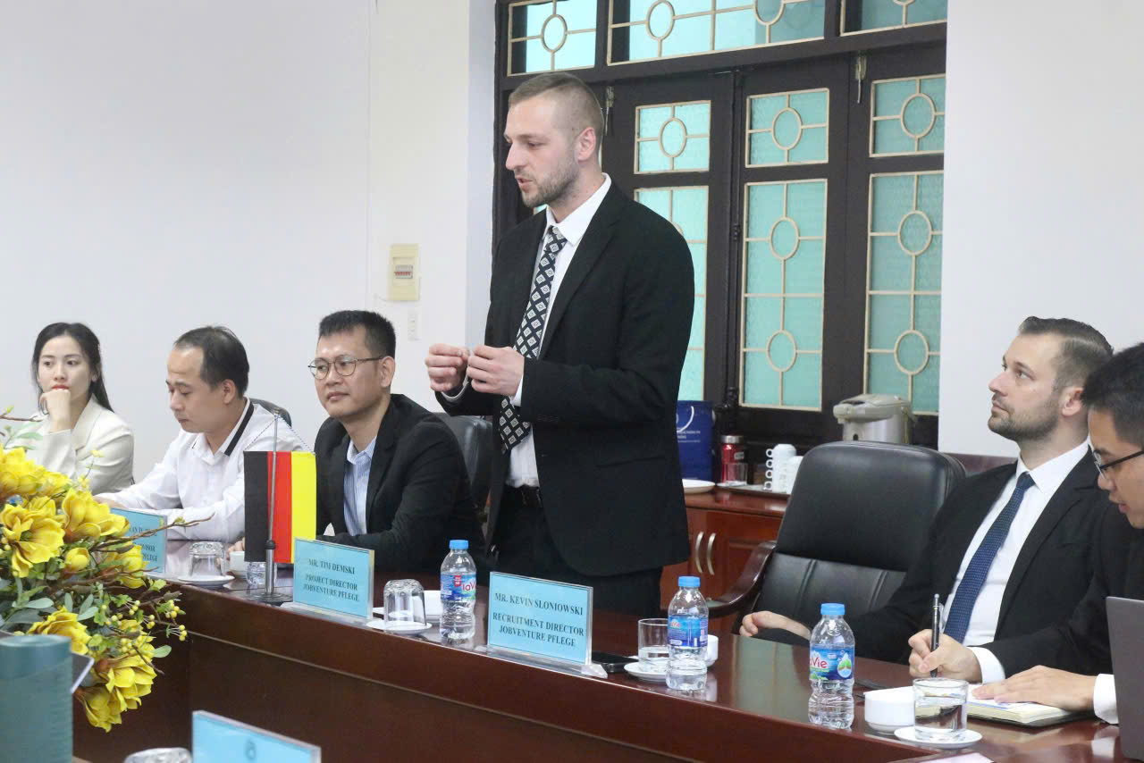 Tiếp đó, buổi làm việc giữa Khoa Kỹ thuật và Công nghệ và Đoàn JobVenture đã diễn ra trong không khí cởi mở và hiệu quả. Hai bên đã cùng thảo luận, thống nhất những nội dung quan trọng, tạo tiền đề vững chắc cho việc ký kết hợp tác trong tương lai gần về chương trình tuyển dụng kỹ sư và thực tập sinh sang Đức.