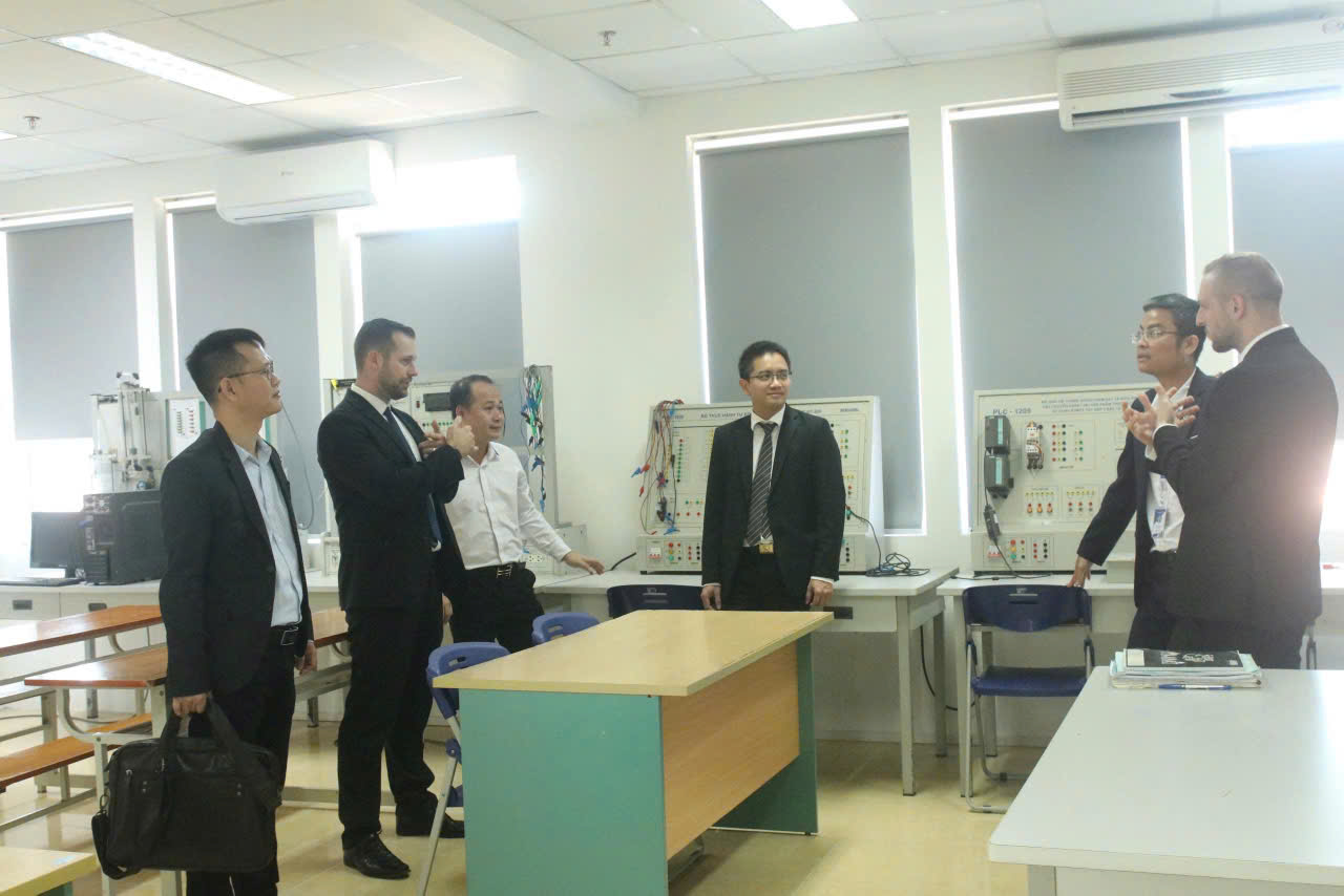 Trong khuôn khổ chuyến thăm, Đoàn JobVenture đã dành thời gian tham quan các phòng thực hành hiện đại của Khoa Kỹ thuật và Công nghệ, đặc biệt là các phòng thực hành chuyên sâu về Cơ điện tử, Tự động hóa và Công nghệ ô tô. Đoàn đã đánh giá rất cao về cơ sở vật chất và trang thiết bị đào tạo tại ICTU.
