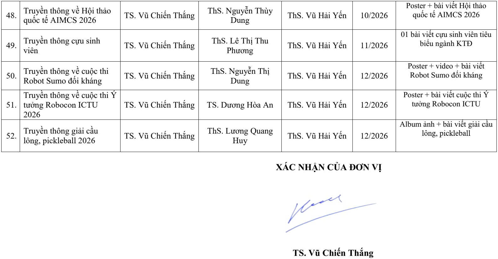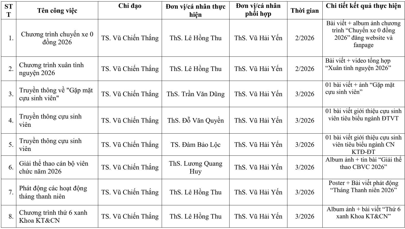 KẾ HOẠCH CÔNG TÁC 2026