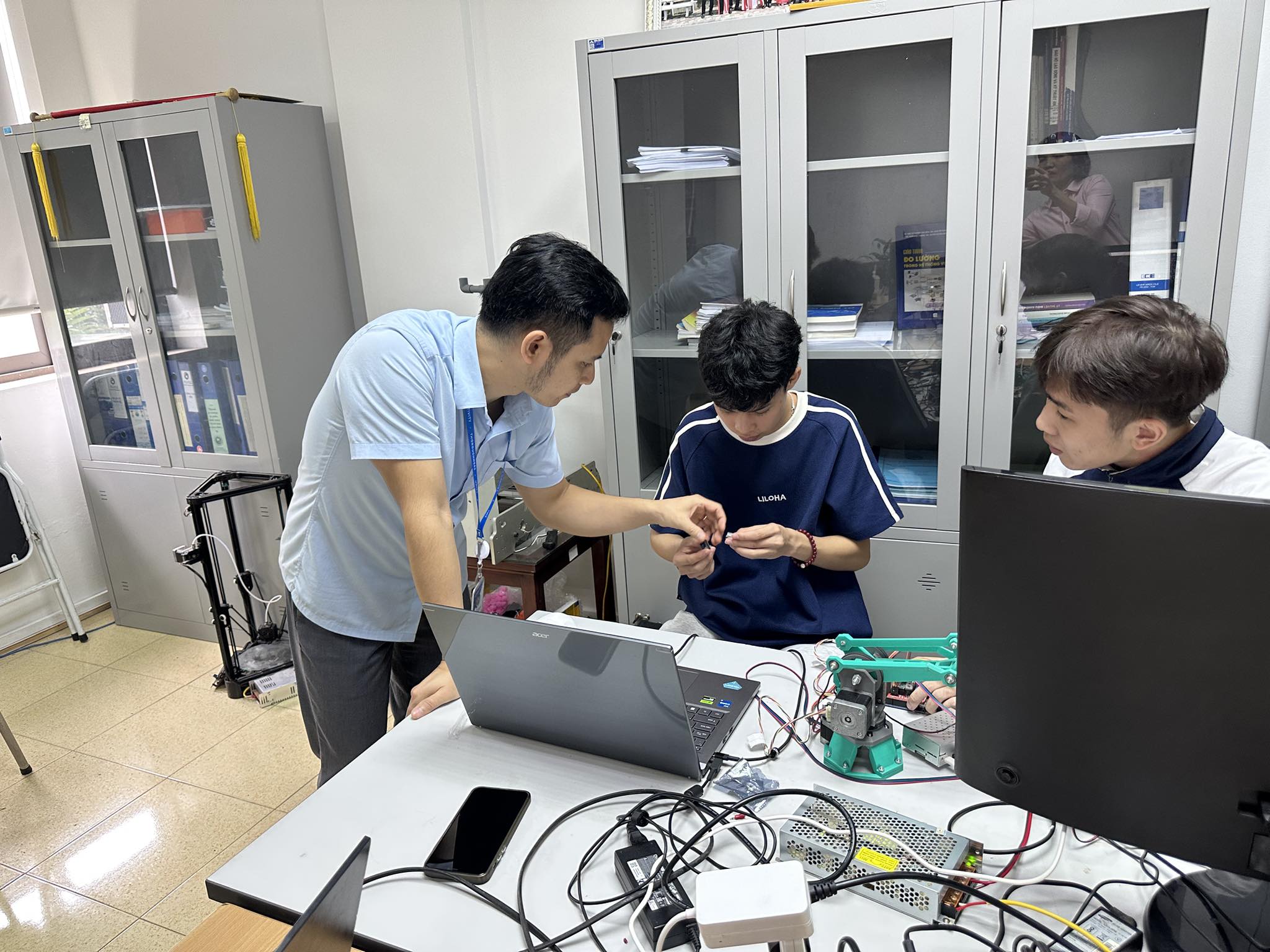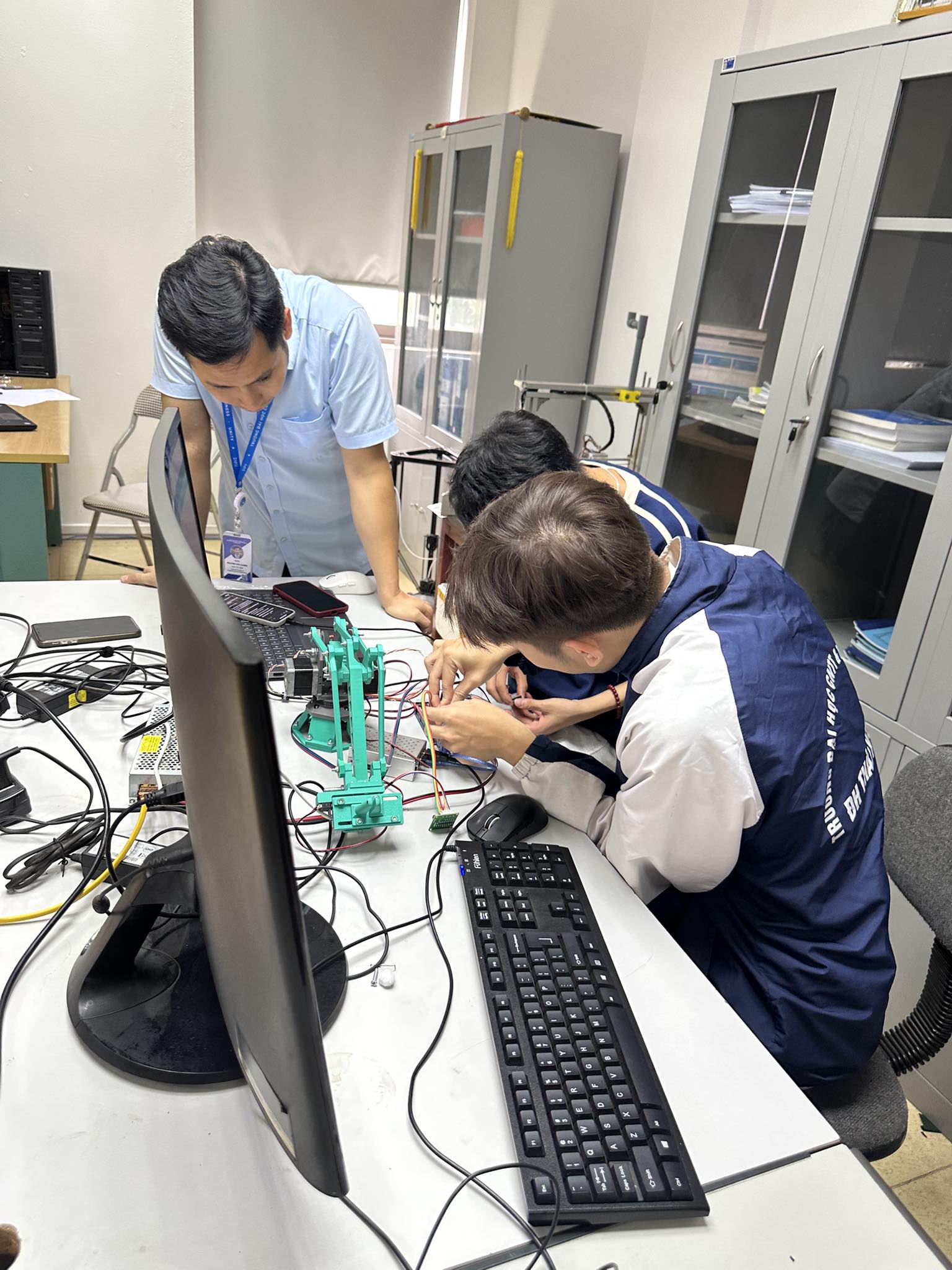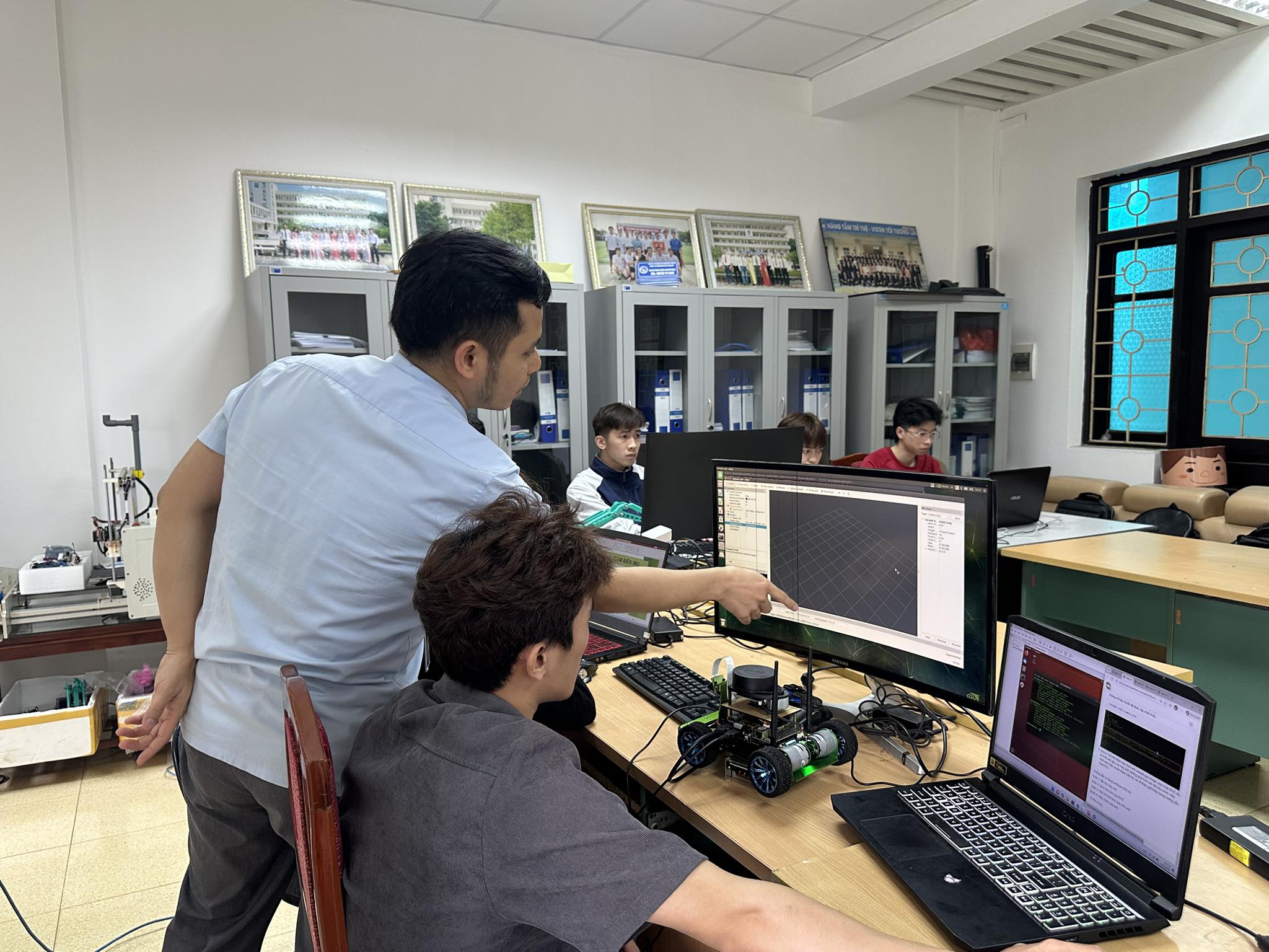Trong từng giờ nghiên cứu, hình ảnh giảng viên tận tình hướng dẫn, cùng sinh viên trao đổi, lập trình, thử nghiệm các mô hình robot và hệ thống điều khiển thông minh đã trở thành nét đẹp quen thuộc. Từ những bộ robot di động, hệ thống xe tự hành, đến các giải pháp xử lý dữ liệu cảm biến, thị giác máy tính và trí tuệ nhân tạo (AI), tất cả đều thể hiện sự kết hợp chặt chẽ giữa cơ khí – điện tử – công nghệ phần mềm.